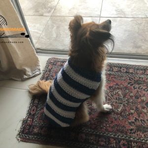Dog Sweater, Dog Jacket, Pet Wear, Crochet Dog Coat, Blue Dog Sweater, Small Dog Sweater, Handmade Dog Coat, Small Dog Coat, Small Dog Jacket, Striped Dog Jacket, Dog Lover Gift, Crochet Dog Jacket, Dog Gift