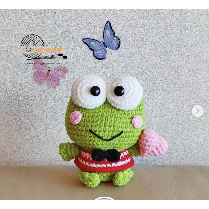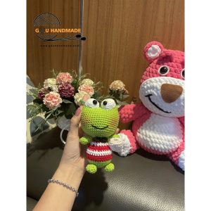 Stuffed Woolly Frog, Keychain as a Gift, Handmade Woolen, Stuffed Animal Knitting Crochet